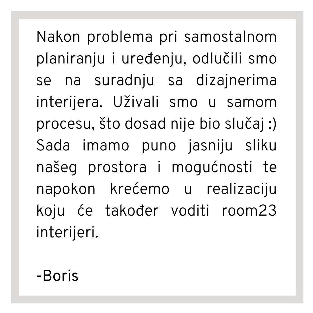 Svaka suradnja zasniva se na međusobnom povjerenju iz kojeg kreiramo svoja najbolja riješenja prilagođena potrebama i željama naših Klijenata. Svoje znanje, kreativnost, stručne suradnike i iskustvo ugrađujemo u svaki projekt i time riješavamo probleme, prepreke i nedoumice s kojima se naši Klijenti suočavaju pri uređenju interijera.